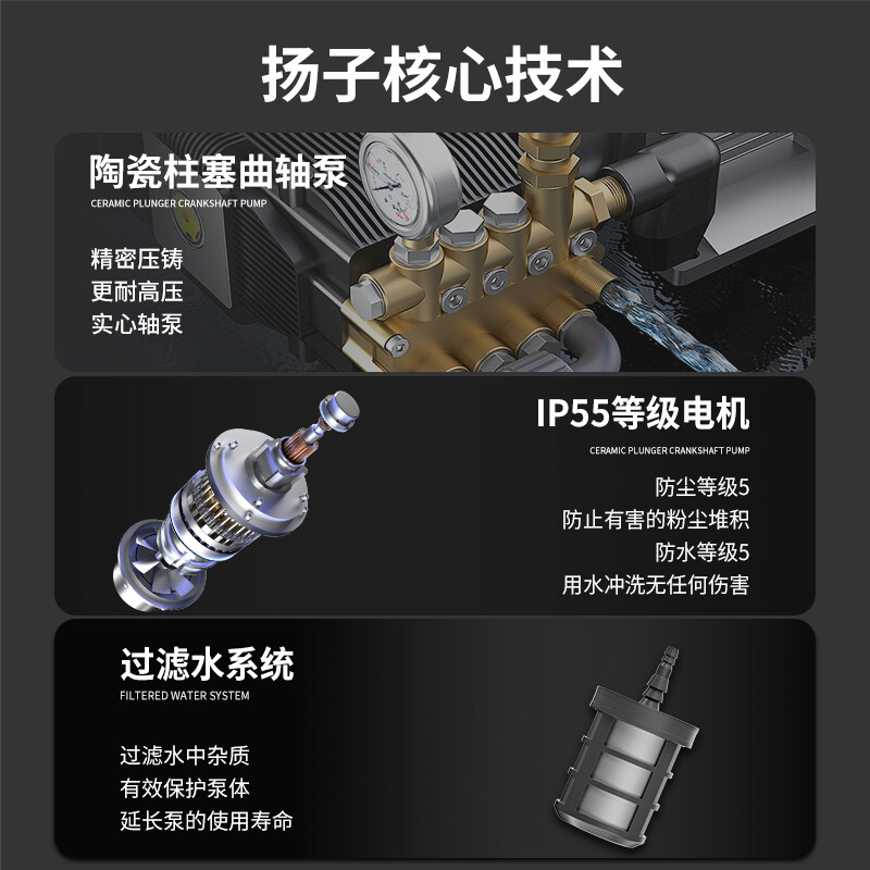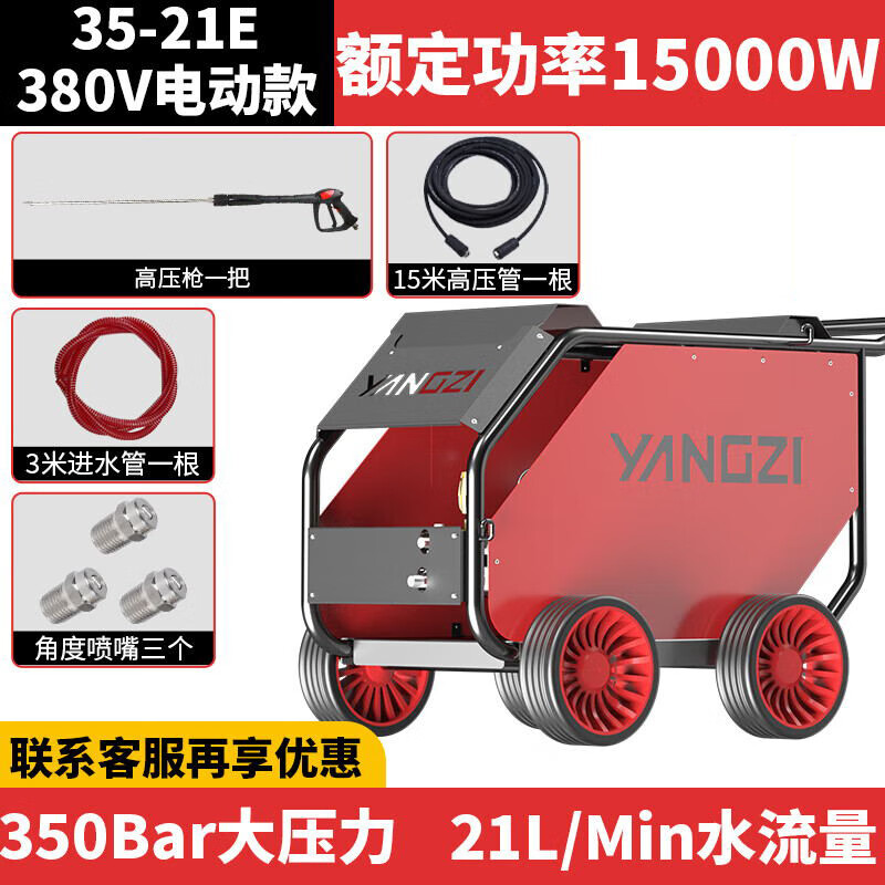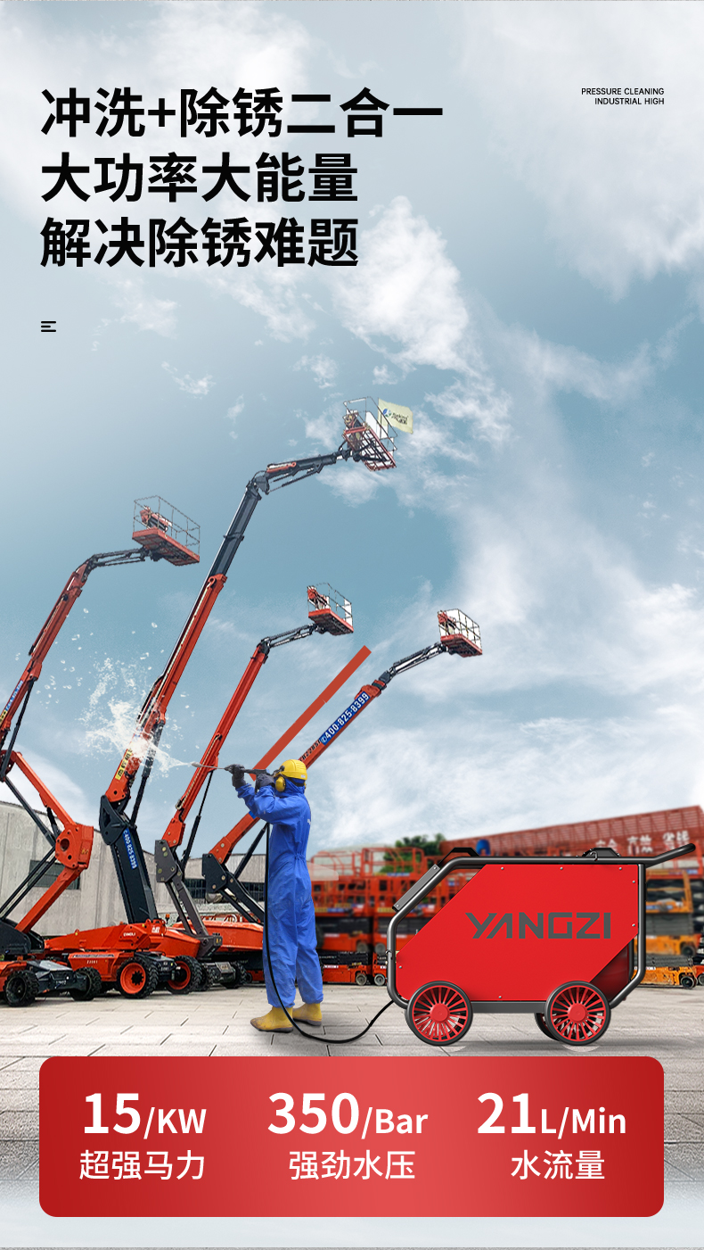 揚子YZ35-21E電動高壓清洗機(jī)廣泛應(yīng)用物業(yè)小區(qū)、工業(yè)化、城市、酒店后廚等污水管道疏通清洗,沖洗+除銹二合一大功率大能量解決除銹難題