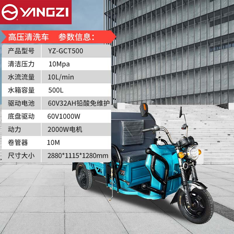 揚子YZ-GCT500純電動高壓清洗車,市政環(huán)衛(wèi)、綠化灑水、道路降塵移動沖洗一步到位,500L大容量水箱持久清洗無須反復加水。
