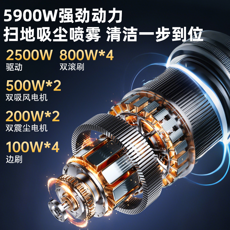 5900W強(qiáng)勁動(dòng)力,掃地吸塵噴霧清潔一步到位,國內(nèi)知名品牌電池單次滿電可清掃120000㎡