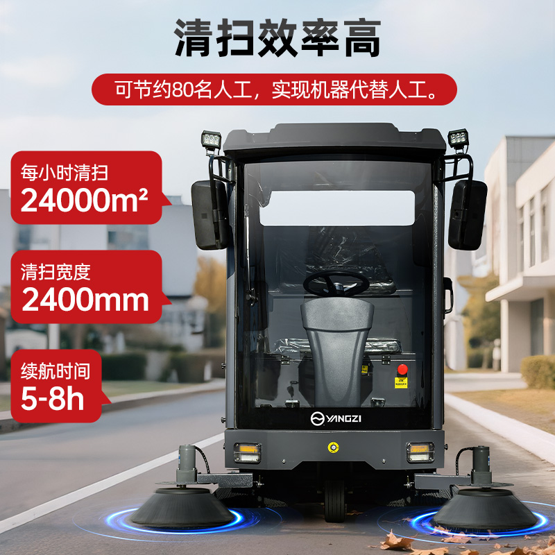 掃吸灑三合一,24000㎡/h高效清掃,智能操控清潔,48V/150Ah電池容量,智能照明大燈,雙碟剎制動