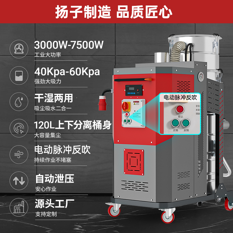 揚(yáng)子C12/5500W工業(yè)吸塵器多種場(chǎng)景任意選擇,選擇揚(yáng)子只為使用更高效輕松,干濕兩用、自動(dòng)反吹灰、120L大容量。